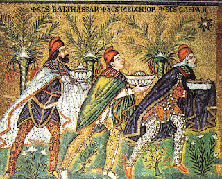 Els noms de Melcior, Gaspar i Baltasar, apareixen per primera vegada a la Basílica de Sant Apol·linar Nou de Ravenna que data del segle VI. Ravenna era capital dels cristians arrians. A Ravenna hi  hagué  la significativa presència  de l'occità Gerbert d'Orlhac,  monjo del monestir de Santa Maria de Ripoll  que fou Papa amb el nom de Silvestre II